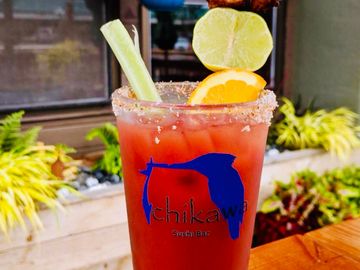 House-made Mary mix, Haku Vodka, celery, pickled asparagus, and choice of tempura shrimp or whole soft-shell crab
